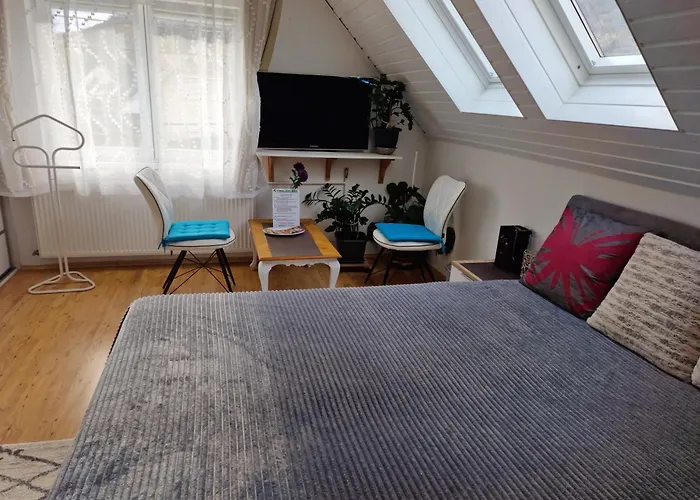 Das Apartment bietet eine Küche, die die Kühlschränke, die Wasserkocher und Küchenutensilien bereitstellt. Die Unterkunft liegt nur 8 Gehminuten vom Restaurant Rózsalugas Étterem mit europäischen Speisen entfernt. Die nächstgelegene Bushaltestelle Tamas utca befindet sich ein paar Minuten Fußweg entfernt vom Ferienwohnung Csaladi Haz.
